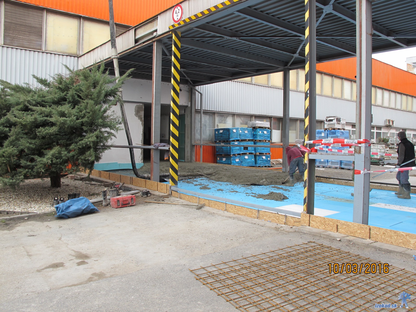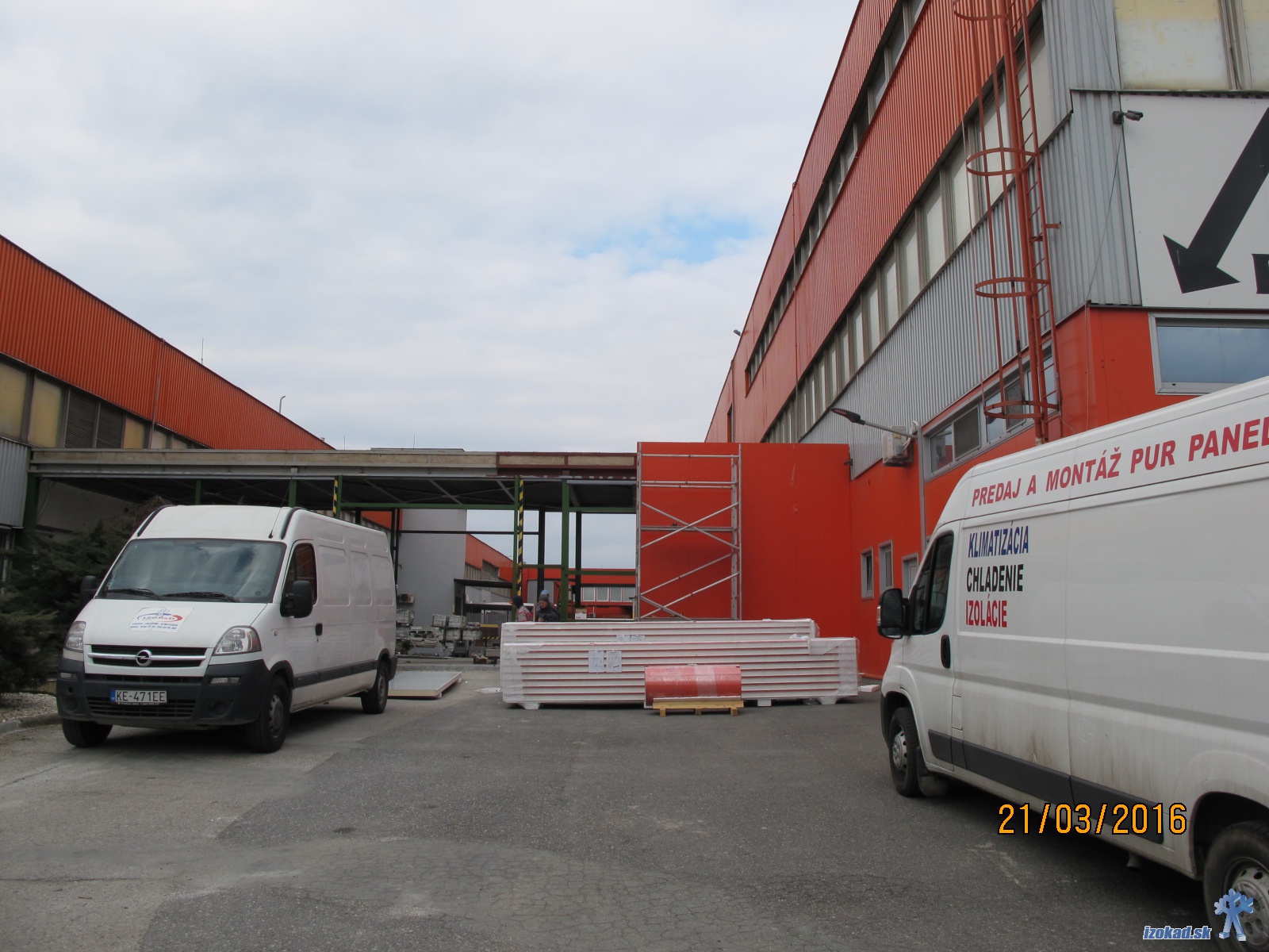 Labaš s.r.o. Opláštenie spojovacej chodby skladov. Pred a počas realizácie.
